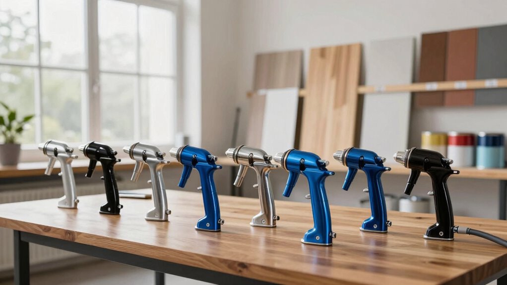 When selecting an airless paint sprayer for beadboard, I consider factors like spray pattern versatility and nozzle adjustability to guarantee smooth, even coverage. Power and pressure levels matter too, as they affect application speed and finish quality, while ease of maintenance keeps the sprayer reliable over time. Don’t forget to check hose length and reach to cover larger areas comfortably without hassle.