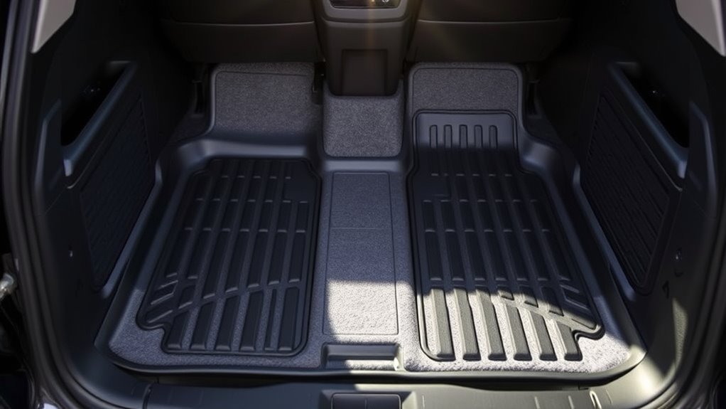 When it comes to maintaining all-weather floor mats, ease of cleaning is a top priority. I look for mats made from materials like rubber or thermoplastic because they’re simple to rinse off and wipe clean. Deep channel designs are a huge plus, as they trap dirt, mud, and water, making debris removal straightforward. Lightweight and flexible mats are easier to remove and reinstall, saving time and effort. I prefer mats that can be cleaned with just soap and water, as it simplifies maintenance and eliminates the need for special products. Non-stick, stain-resistant surfaces are also a big advantage, helping the mats stay fresh with minimal effort. Overall, choosing mats that prioritize easy cleaning keeps my vehicle looking neat and makes regular maintenance hassle-free.