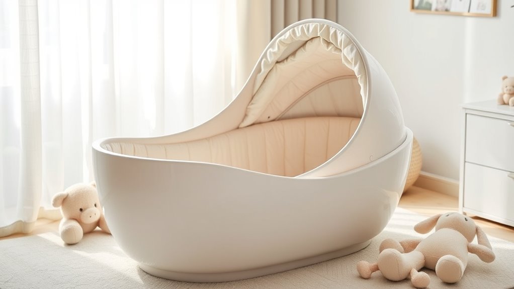 Choosing the right auto-rocking bassinet with cry detection feels like finding a gentle anchor amidst the storm of parenthood. These cradles aren’t just furniture—they’re lullabies made tangible, whispering comfort and security to your little one. As you navigate the sea of options, trust your instincts to steer you toward the perfect haven for your baby’s restful voyage. After all, a well-chosen bassinet is the lighthouse guiding your tiny sailor safely to dreams.