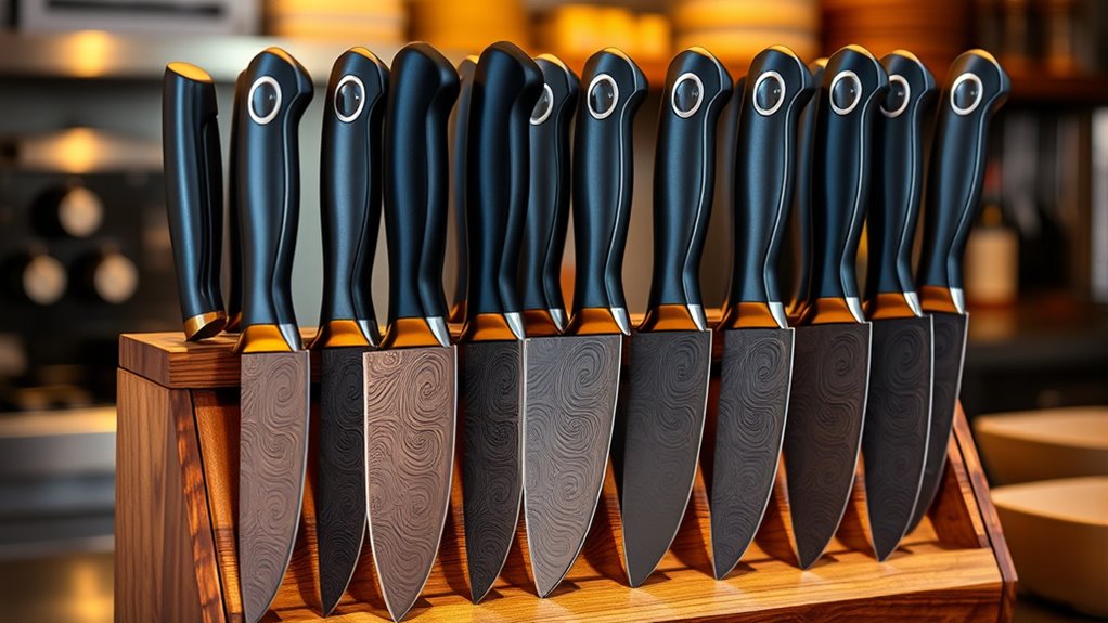 So, I get it—choosing the right carbon-steel or Damascus knife set can feel overwhelming. But remember, investing in quality tools truly elevates your cooking, making prep easier and more enjoyable. Don’t let the price tag scare you; these sets last a lifetime with proper care. Trust me, once you experience the sharpness and durability, you’ll wonder how you cooked without them. Your kitchen deserves the best—go ahead, make that upgrade.
