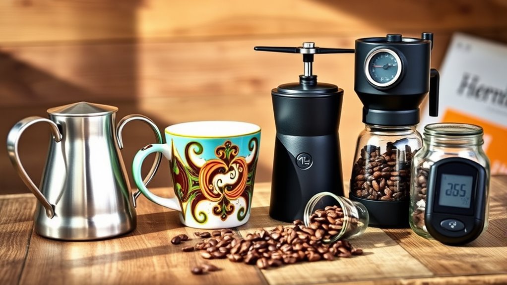 Finding the perfect gift for a coffee lover is like discovering a hidden treasure chest—each item adding new flavor and joy to their daily brew. I once gifted a cozy mug and a variety pack, and watching my friend’s face light up was priceless. Whether it’s a sleek warmer or affirming jar, these gifts are sure to brew happiness. After all, the best present is one that makes every sip feel special.