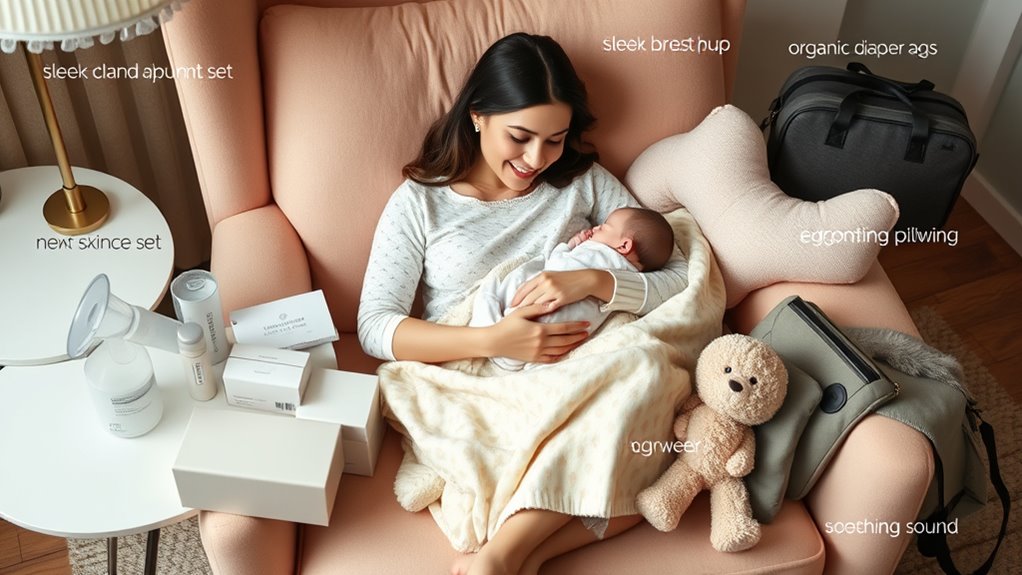 Choosing a practical gift for a new mom means focusing on items she can use every day to make her life easier. Functional gifts like insulated tumblers or nursing accessories help streamline routines and keep essentials at hand. Comfort is key, so supportive apparel or cozy socks are thoughtful choices that aid her postpartum recovery. Items with multiple uses, such as calming candles or versatile organizers, maximize value and usability. When selecting a gift, consider her specific needs—whether it’s breastfeeding support or sleep aids—to demonstrate genuine thoughtfulness. Practical gifts tend to be appreciated for their durability and ability to ease the challenges of new motherhood. Ultimately, they show you care about her comfort and well-being, making her daily life more manageable.
