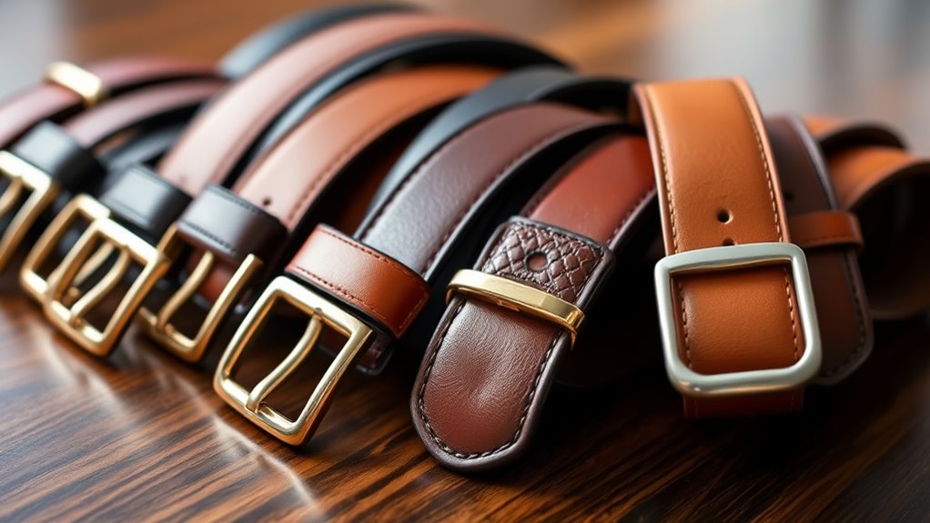 The design and durability of the buckle play a crucial role in ensuring your luxury leather belt remains functional and stylish over time. I always look for buckles made from high-quality metals like stainless steel, brass, or zinc alloy, as these resist tarnishing and breakage. Reinforced construction, such as solid attachments and secure stitching, boosts longevity even with daily wear. The style of the buckle—whether traditional prong, ratchet, or automatic—affects ease of use, security, and compatibility with various outfits. A well-crafted buckle features smooth edges and a secure fastening mechanism, preventing accidental opening and leather damage. Ultimately, the material and design influence both the belt’s durability and aesthetic appeal, making it a lasting investment in your wardrobe.
