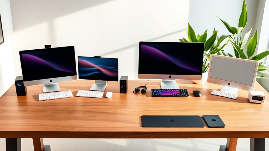 Balancing performance needs with your budget is essential when selecting a Mac Studio configuration. Higher-end models with advanced processors, more RAM, and larger storage options cost more, impacting your overall budget. Choosing a more affordable setup might save money upfront but could limit multitasking and future-proofing, leading to earlier upgrades or replacements. It’s important to weigh the trade-offs between initial cost and long-term expenses. Customizing or upgrading components later can sometimes be more cost-effective than buying top-tier configurations from the start, especially if your needs are specific. Ultimately, finding the right equilibrium ensures your Mac Studio meets your current requirements without overspending, while still allowing room for growth and upgrades down the line.