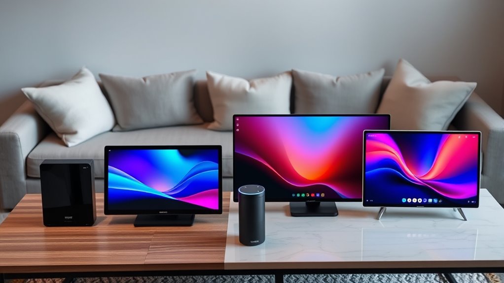 Choosing the right premium smart display with Alexa feels a bit like selecting the perfect vintage record; it’s about what resonates with your style and needs. Whether you want sleek design, powerful features, or seamless smart home integration, these top picks in 2025 have you covered. Just remember, in a world that’s constantly evolving, sometimes the best tech is the one that feels like it’s been there all along—like a classic tune that never fades.