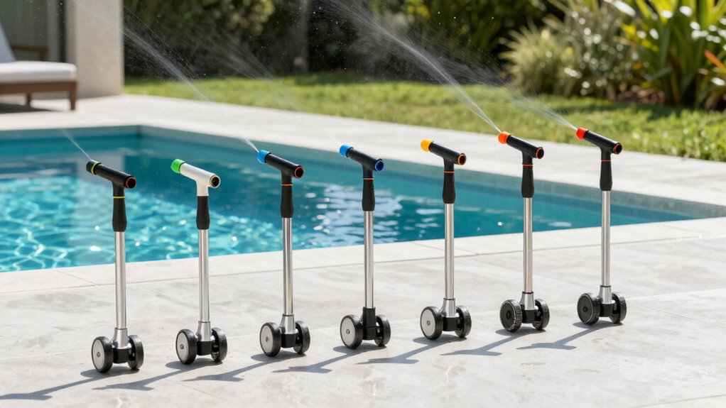 When considering spray pattern options for pool deck coatings, it’s important to understand how different patterns impact coverage and precision. I’ve found that fine, medium, and coarse patterns serve different purposes; fine for detail work, coarse for large areas. Adjustable nozzles let me customize the pattern for even coverage, especially on big or intricate surfaces. A fan-shaped pattern spreads coating evenly across wide spaces, minimizing streaks and overlaps. Narrower patterns are perfect for edges or tight corners where precision matters. The spray pattern I choose also influences how much coating I use and how quickly I can finish a project. Selecting the right pattern helps ensure efficient application, reduces waste, and results in a professional-looking finish on your pool deck.