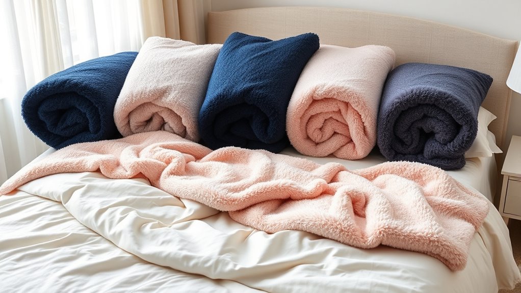 If you’re searching for the ultimate comfort that can transform your nights into a sanctuary of calm, these weighted blankets are your secret weapon against anxiety. Trust me, once you experience the soothing embrace of one, you’ll wonder how you ever slept without it—it’s like wrapping yourself in a cloud of serenity. Don’t wait to discover the peace you deserve; your perfect calm is just a blanket away!