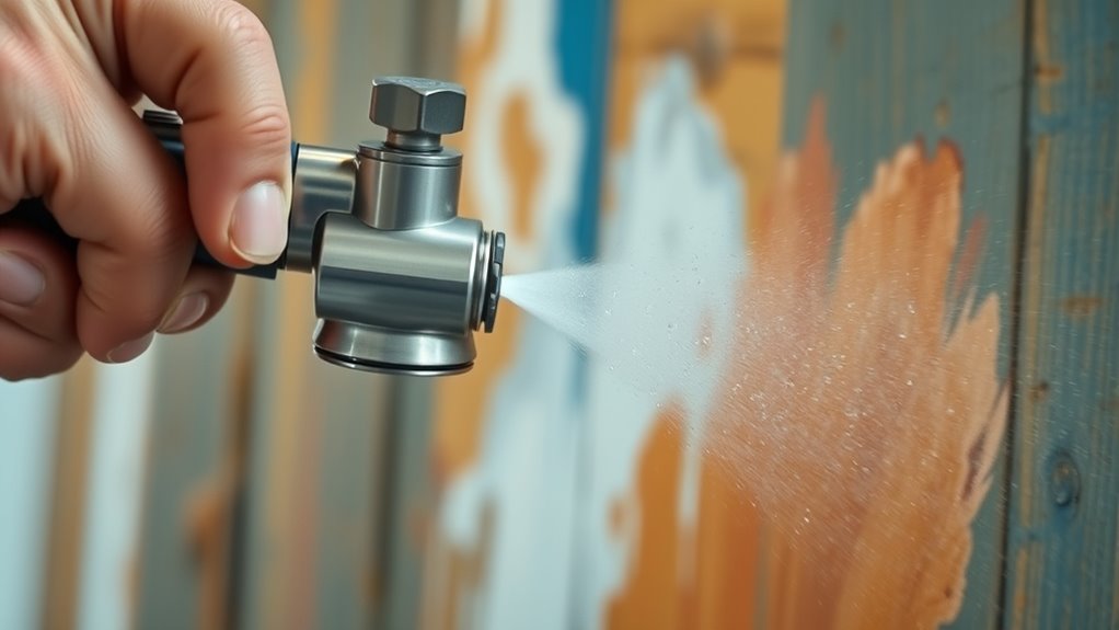 When you’re ready to spray oil-based paint, consider thinning it slightly. Oil paints tend to be thicker and more viscous than water-based paints, which can strain your sprayer. Use a compatible thinner or solvent as recommended, but be cautious—over-thinning can compromise the paint’s adhesion and finish. Test the mixture on a small surface first to see if it sprays smoothly. Adjust the spray pressure accordingly; oil paints often require higher pressure settings to achieve an even coat without drips or sputtering.