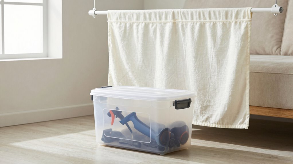 Choosing the right equipment is vital for minimizing dust spread during and after spray projects. Invest in high-quality air filtration systems that effectively trap airborne dust particles, preventing them from circulating into other areas. Look for equipment with HEPA filters, as they capture even the smallest particles. Regular equipment maintenance is essential; clean filters and check for leaks to keep your systems functioning at their best. Use portable air scrubbers or vacuums equipped with HEPA filters to contain dust at its source. Properly maintained equipment reduces the risk of dust escaping into your home’s air, keeping surrounding spaces cleaner. By selecting effective air filtration devices and staying on top of maintenance, you can markedly limit dust dispersal and protect the rest of your house.