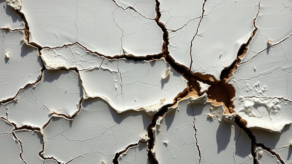Yes, environmental factors can worsen cracking after spraying. When you expose your surface to moisture exposure or temperature fluctuations, it stresses the coating, making cracks more likely. Sudden changes in temperature cause expansion and contraction, which weakens the sprayed layer. To prevent this, guarantee proper curing conditions and avoid spraying in extreme weather. Managing environmental conditions helps maintain the integrity of the coating and reduces cracking risks.