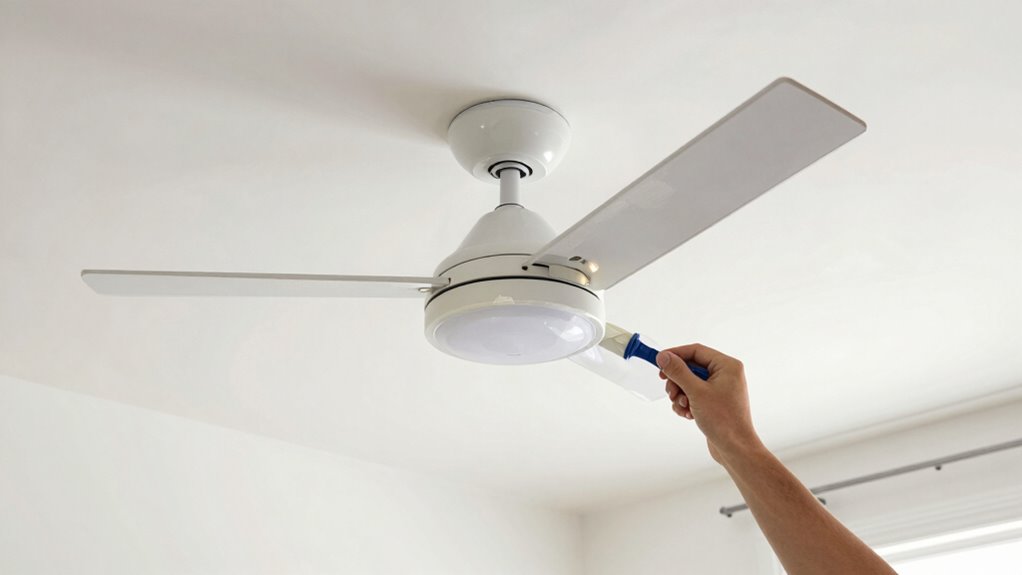 - For ceiling fans, turn off and tape around blades, or temporarily remove blades for easier masking.