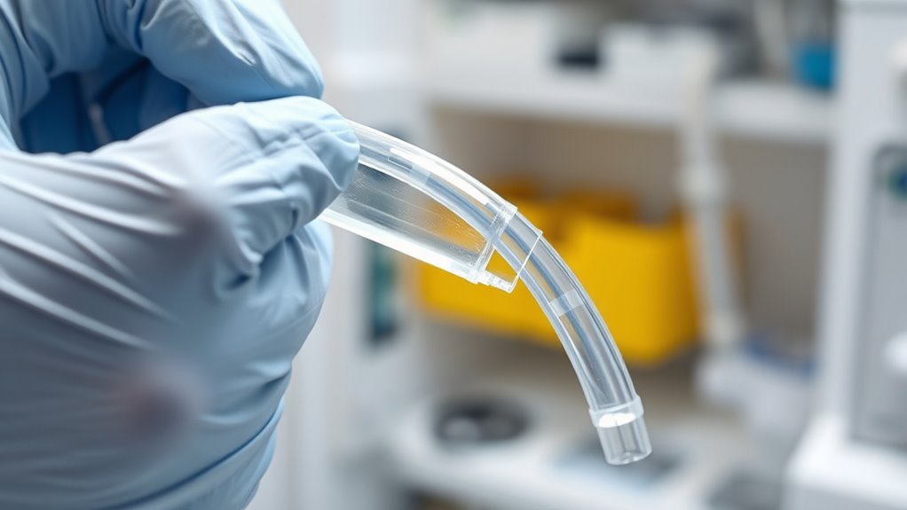 If your new suction tube isn’t working properly, start by checking for blockages or debris that may need suction tube maintenance. Confirm it’s properly connected and seated. If issues persist, consider alternative suction methods like manual or hand-held pumps. Always verify compatibility with your device and inspect for cracks or damage. Troubleshooting these aspects helps improve suction performance and ensures safe, effective operation.