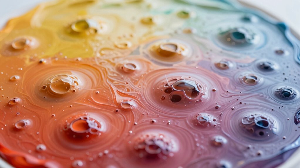 Controlling environmental factors is equally important. High humidity and temperature can alter paint drying times, making solvent vapors more likely to become trapped. When working with airbrush techniques, maintaining a consistent, controlled environment helps guarantee proper solvent evaporation. Additionally, giving each layer sufficient flash time before applying the next prevents solvents from getting trapped and forming those unwanted craters. Moreover, understanding the paint formulation and how it affects drying behavior can help you choose the right products for your project.