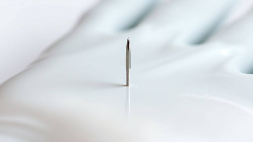 For detailed latex work, choose a small tip size, typically 0.3mm to 0.5mm, to guarantee precision. Thinner latex requires a finer tip to control application and maintain clean lines, especially with thicker or more viscous latex. Use an applicator material that offers smooth glide and minimal latex absorption, like metal or high-quality plastic tips. Adjust tip size based on latex thickness to achieve the best detail and avoid messes.
